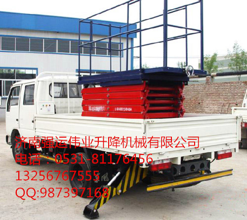 產品規(guī)格:本類產品根據(jù)升降高度可分為4、6、8、10米升降平臺,設備載重300公斤至500公斤,客戶可根據(jù)需求選用解放、東風、輕騎、福田、電瓶車等任何車型,設備直接采用汽車或電瓶的直接動力升降。