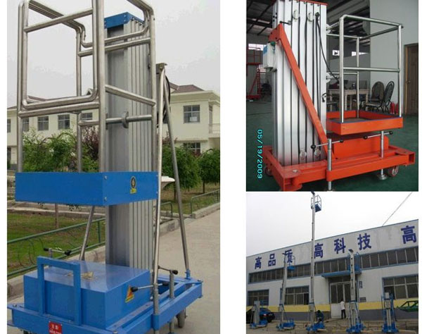雙柱鋁合金升降機(jī):升降動力分為220V、 380V,或電瓶動力源,特殊環(huán)境也可采用防爆泵站及防爆電器。升高4——10米,載重100-150公斤。主體采用高強(qiáng)度優(yōu)質(zhì)鋁合金材料,具有造型美觀、體積小、重量輕、升降平穩(wěn)、安全可靠等優(yōu)點。廣泛用于工廠、賓館、餐廳、車站、影劇院、展覽館等場所,是保養(yǎng)機(jī)具、油漆裝修、調(diào)換燈具、電器、清潔保養(yǎng)等用途的最佳安全伴侶。